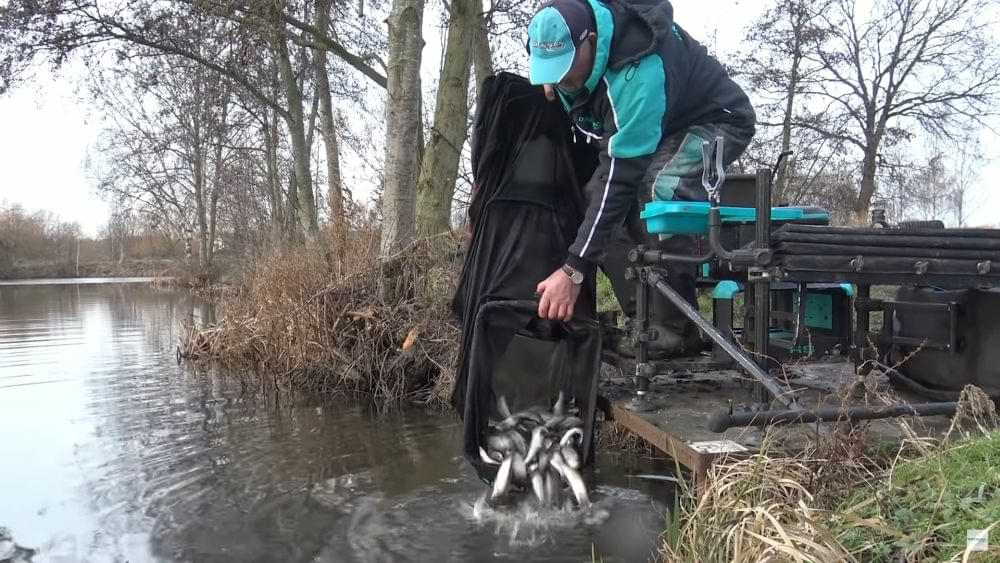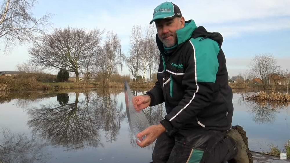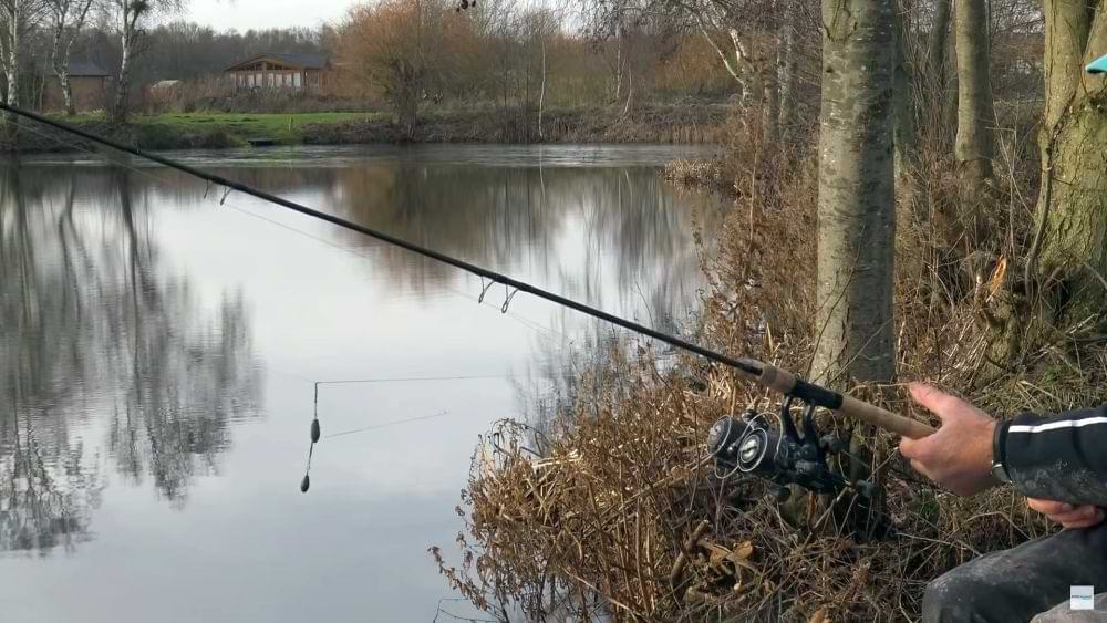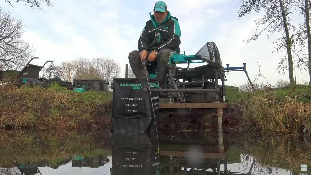 Дистанцията е малка 15 метра , има поставено олово вместо хранилка и стреля по няколко червея с прашка . Използва кука Drennan red maggot номер 14 с един закачен червей на нея.