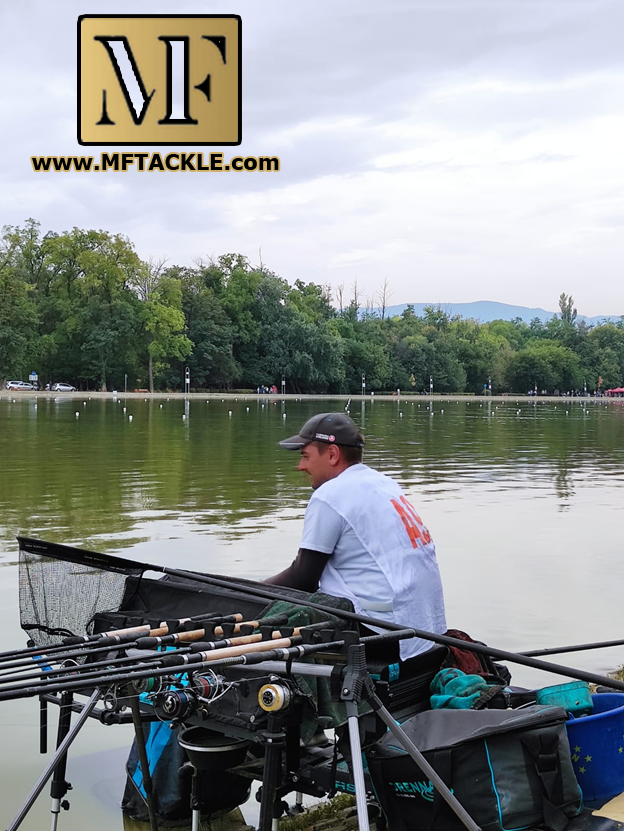 Отново си направих две дистанции, като там тапите са на по-близка дистанция и фиксирах на 36 м. и на 28 м. Захраних с 7-8 кошници на далечната дистанция и с 5 на близката. Всичко както обикновено на канала се повтори. Получавам дежавю всеки път !?! Аз отново нямам риби, другите ловят и то със сериозно темпо. Този път на близката дистанция обаче също нямам риби, успях да хвана една и всичко приключи. Метнах на далечната и ме взе „товарният влак“ с плетеното влакно и малката кука. Никакъв шанс за реакция от моя страна. Вече минаваше един час а аз имах една риба. Беше време за кардинални промени, направих нова тежка захранка с много месо в нея и се надявах на някоя бонус риба да ме измъкне от тежката ситуация. Продължих да вкарвам яко месо и уклеите и дребните риби полудяха. Не можех да метна на друго освен на дебел торен червей и царевица, а рибите му се мръщеха. Минах на повод 0,16 и кука 12 номер, но нямах никакви индикации и изтъних до 0,14 и кука 14. Взе ми пак голяма риба, пак без никакъв шанс за реакция от моя страна. Малко по малко, макар и трудно започнах да ловя каракуди и чаках включване от бонусче с нормален размер, което да изкарам. И го дочаках!.. Взе ми риба, която успях да обърна и внимателно да докарам до кепа. Оказа се хубав шаран с тегло над 2 кг. Продължих да вкарвам от всичко по-много с цел да вкарам още някой бонус в кепа. Извадих късмет и успях да уловя още един шаран около 1 кг. и някоя друга каракуда. Така с двата шарана се докопах до 5 –тото място в сектора. Което на фона на риска, който поех си беше супер. Възможните сценарии бяха два… или не ми влизат шарани и си оставам твърдо последен или продължавам да играя по стандартната схема с пестеливо подаване на жива стръв и чакам да се появят риби. Кое щеше да е по-правилно не знам?! Аз избрах да атакувам и риска се оправда. Но в много случаи не сработва. Втория ден лових основно с ITALICA Aria Feeder 3pcs 3.96m 60gr. Въпреки, че е дълга заради малката си акция покрива комфортно до 40 метра. Работи добре с 20-30 гр. кошнички с не голям обем. Но има един огромен плюс, поема тласъците на рибите с почти цялата си дължина. По този начин въпреки супер пипкавото кълване имам откачени само 2 риби пред кепа, а всички бяха хванати за крайчето на устата. По-малкия шаран до последно не знаех дали не е каракуда. Безупречна работа на бланката. Следващия път се надявам да не получа пак дежавю. Другите от отбора играха стабилно и завоювахме второто място. Благодарности на нашите рънари , без които това представяне нямаше да е възможно! Кирето , Денис и Оги.