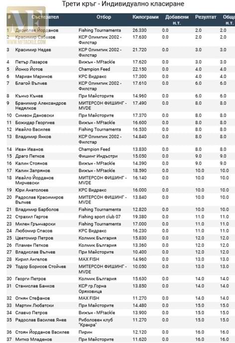 Индивидуално за кръга първи е Десислав Йорданов, втори Красимир Сабахов, трети Красимир Недев.