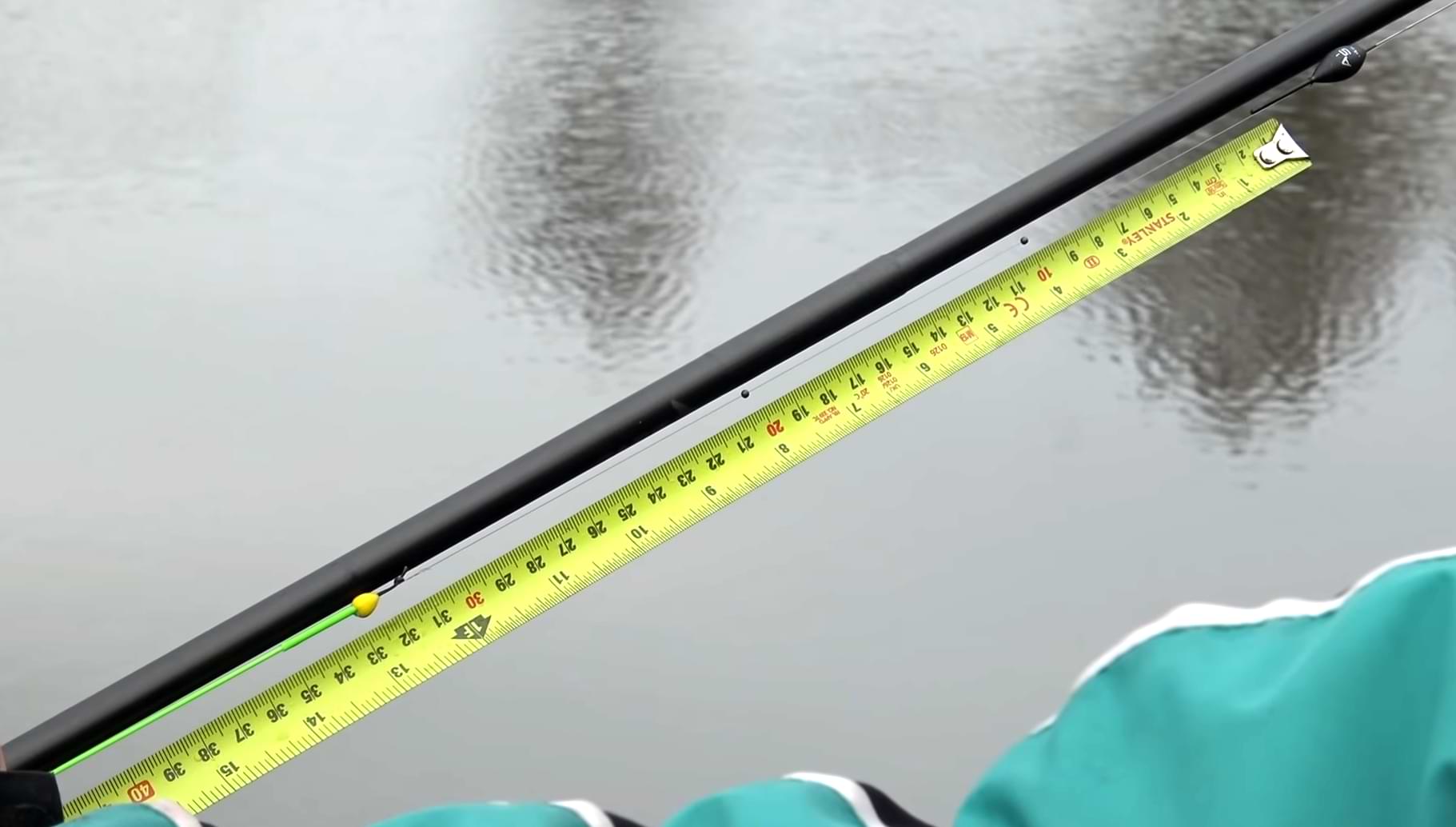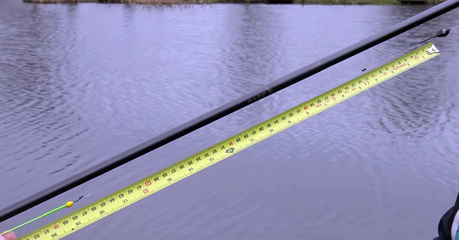 Ако времето е много ветровито разстоянието между плувката и върха на щеката е 50 см. Тогава поставя 3 сачми номер девет на 10 см. от плувката една след друга за още по-голяма стабилност.