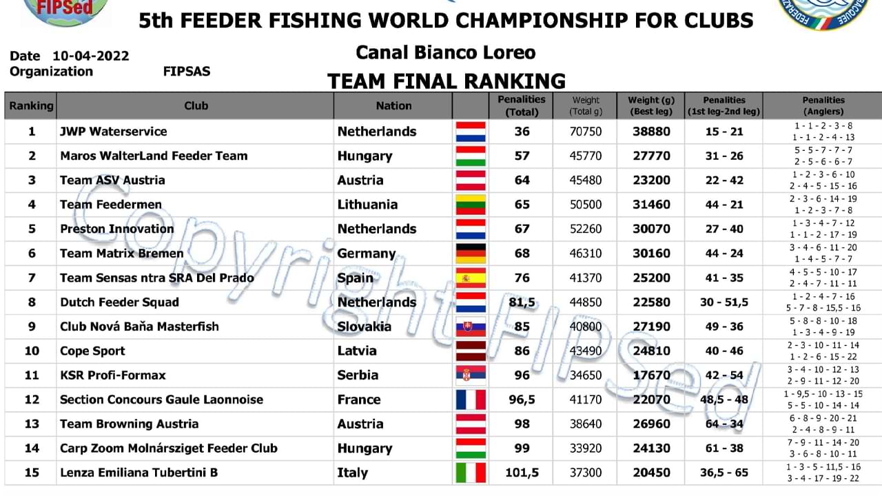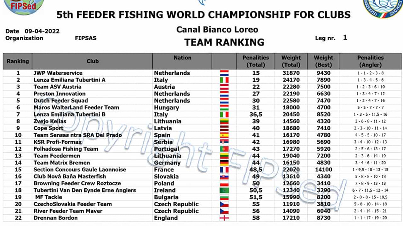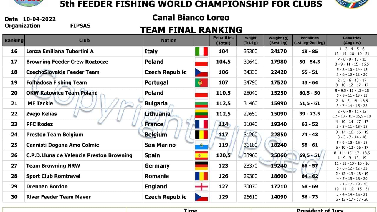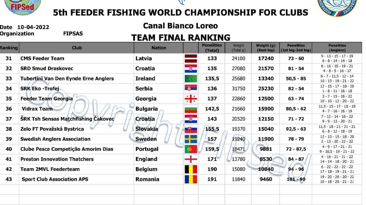 Световно първенство по фидер риболов за клубове Италия канал Бианко 4.04-10.04.22