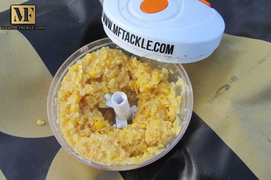 За стръв имах торен червей, пинки, бял-шарен и царевица. Една част от царевицата накълцах с блендер до консистенция на каша.