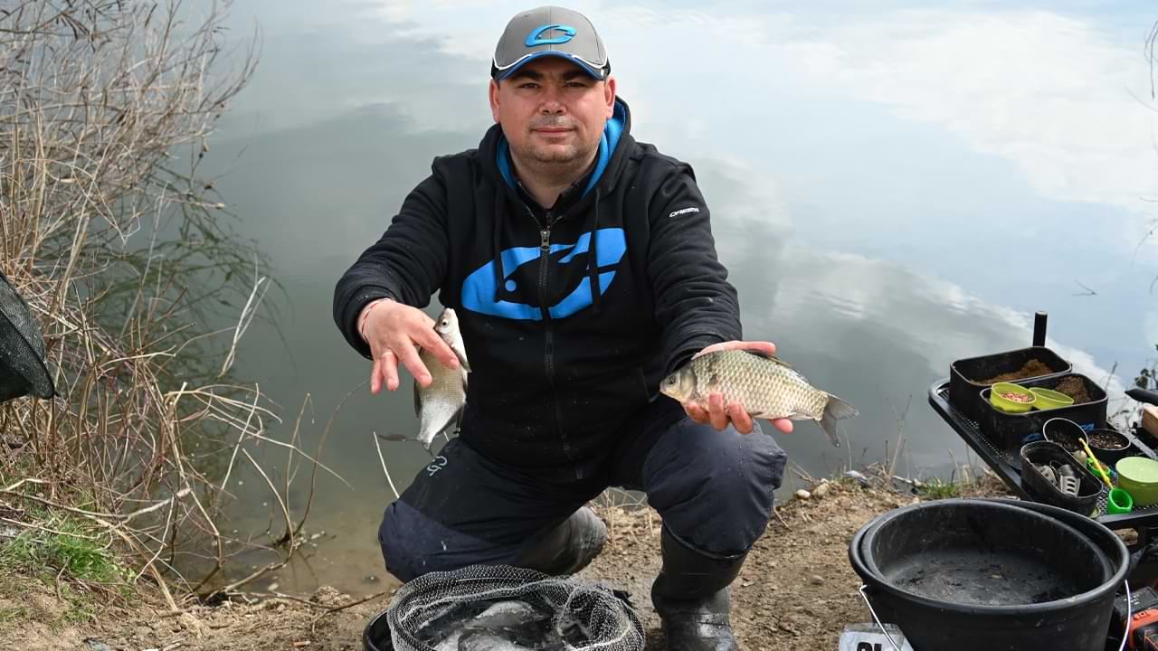 Реших да забъркам Веда анасон, типично за каракуди, мека, ароматна и инертна, сладко–солена. Овлажних я сравнително добре с 550 мл. вода, като реших да не добавям глина, а ще ловя с много малка кошница. Захраних с 5 кошници не големи с чиста храна и стартирам с една бяла и червена пинка 50 см., повод 0,10 мм, кука гамакацу 1010, номер 12, реално е около 16 номер. Очаквах бързо кълване, но след десетина презареждания индикация нула. Разклипсих и развих на око, към 2,5 до 3 метра и влязох по на вътре, а там дълбочината ставаше друга, още с второто подаване, каракуда, аха ще ги ловим. Калин сподели, че са много пасивни и за да се види кълването повода трябва да е къс. Намалих го и успях да виждам по-добре индикациите на рибите, но за изненада каракудите не бяха основен вид риба, а на петното се настаниха платички. Предполагам че това се случи заради подаването на повечко храна, докато се опитвах да разработя новото петно с новата дълбочина.